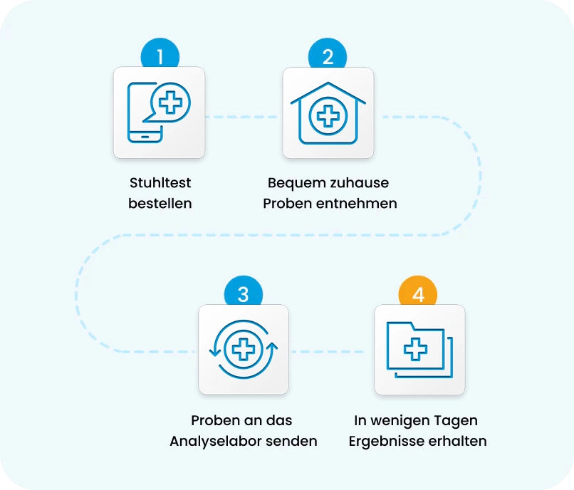 Die Durchführung ist unkompliziert: Stuhlprobe zu Hause entnehmen, im Probenröhrchen versiegeln und an unser zertifiziertes Labor schicken.